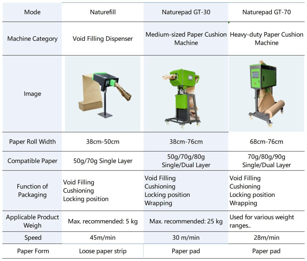 The Naturefill paper void fill machine is ideal for e-commerce, retail, logistics, assembly lines, express delivery and physical stores. It efficiently protects auto parts, gear components, fragile glass, cosmetics, ceramics, crafts and other sensitive items. This eco-friendly kraft paper cushion system delivers reliable, green packaging solutions for many kinds of products